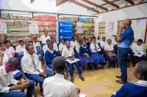 Chichiri Secondary School students listening to a presentation during Ecobank Malawi Limited’s visit