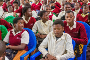 Ngumbe Secondary School students paying attention to a presentation from First Capital Bank officials