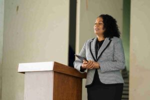 CDHIB CEO Kwame Ahadzi encouraging students during motivational talk