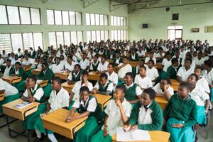 Stella Maris Girls Secondary School students paying attention to a presentation from National Bank officials